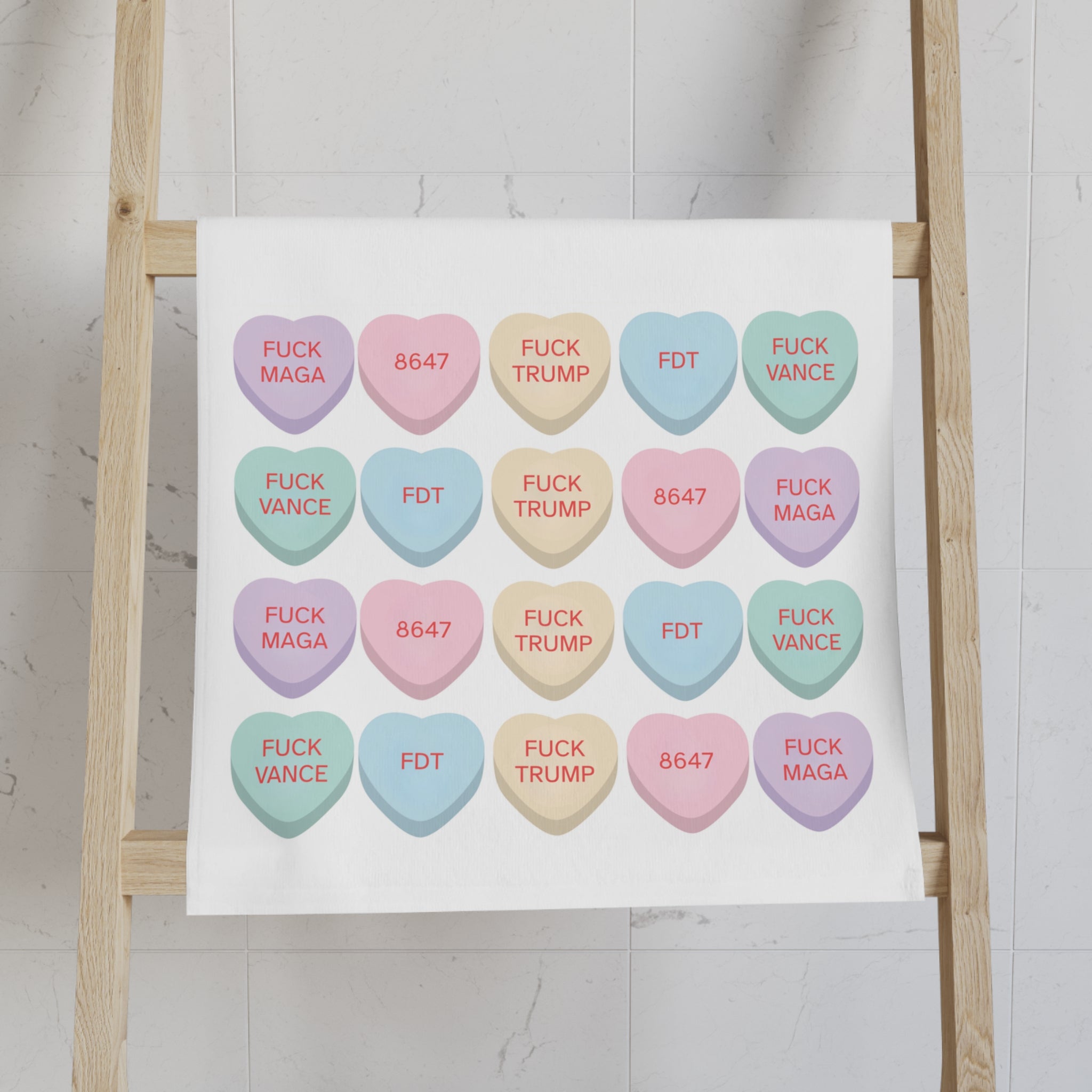 Candy Hearts F*ck Trump Hand Towel