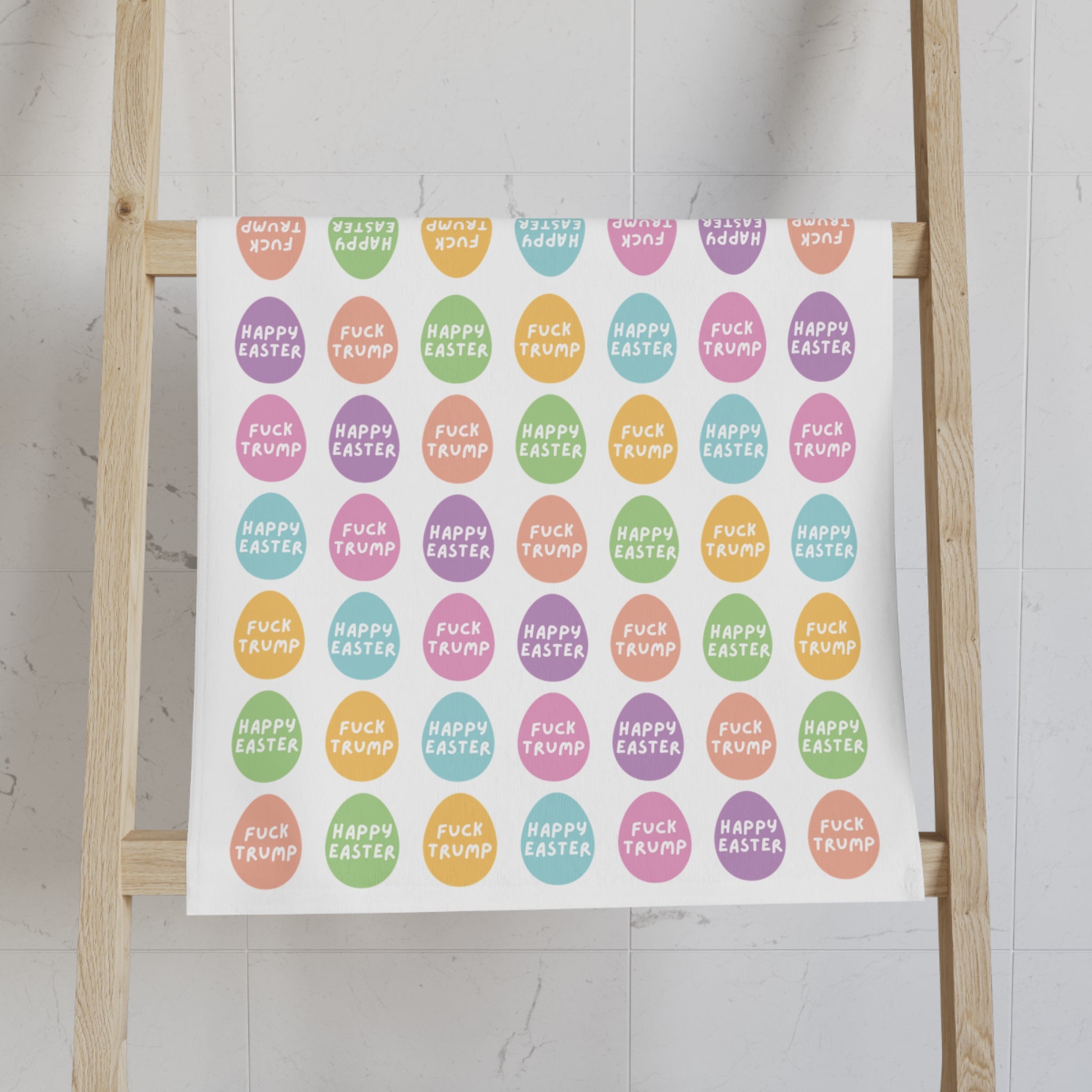 Add a bold twist to your spring décor with the F*ck Trump Easter Eggs Hand Towel, a playful blend of festive Easter charm and unapologetic political humor. Featuring colorful Easter egg designs with an FDT message, this funny liberal hand towel is perfect for brightening up your kitchen or bathroom—and starting a few conversations along the way.