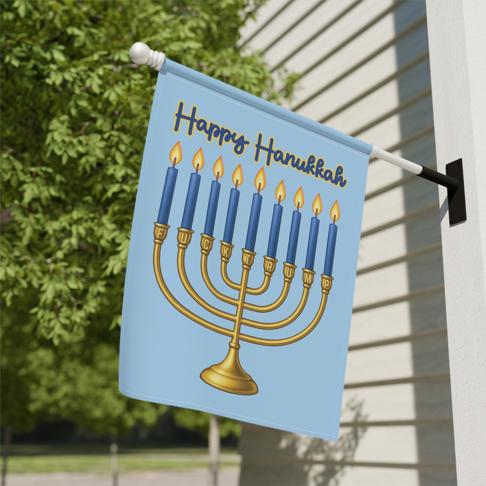 Make a statement this holiday season with the "F*ck Trump Hanukkah Menorah Garden Flag". Perfect as festive Jewish décor or a liberal garden sign, this bold outdoor banner adds humor and progressive spirit to your holiday home.