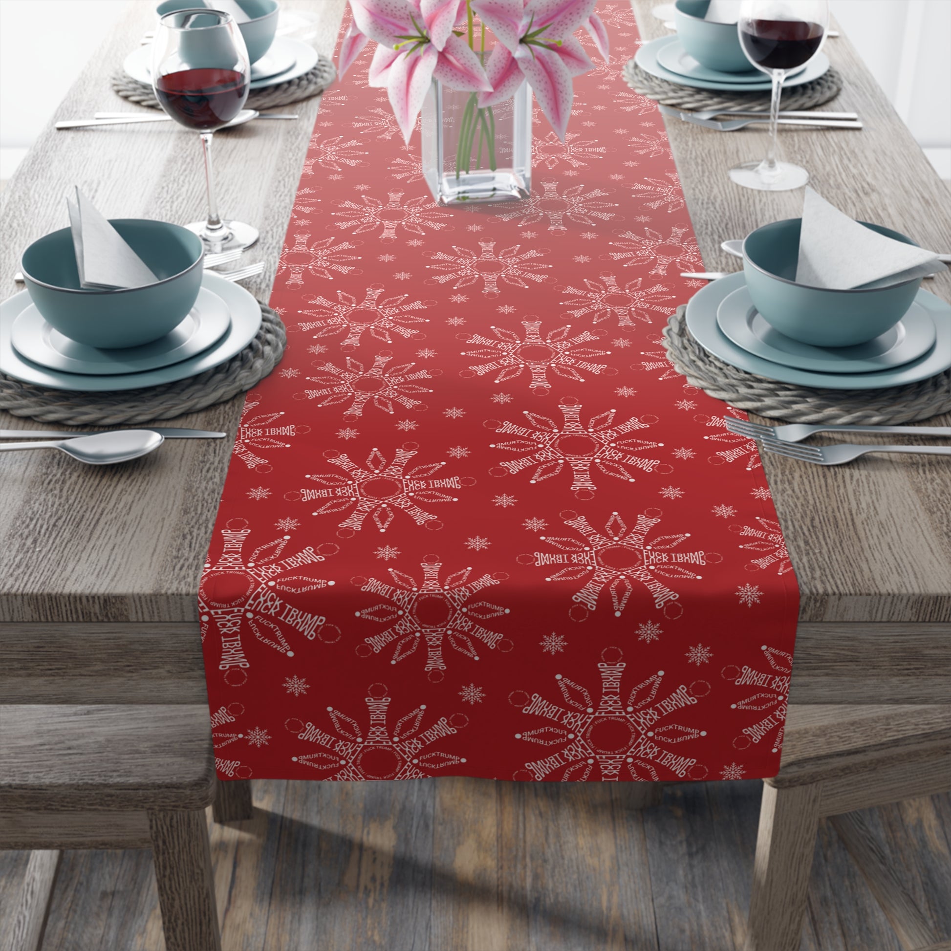 ❄️ Add festive charm to your holiday table. The Subtle F*ck Trump Red Snowflake Table Runner combines classic seasonal elegance with a bold progressive twist—making it the perfect piece of liberal Christmas décor.